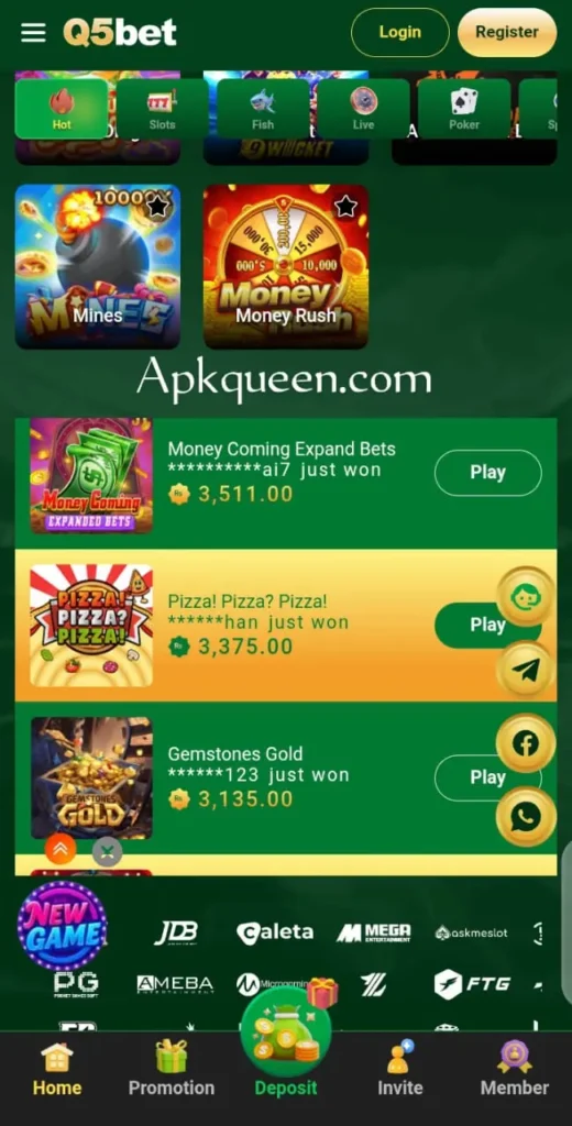 The Q5bet Game APK offers daily and weekly bonuses to players and also gives free spins, which can help players increase their budgets. The other thing is that you can earn money through referral links, which means you can invite different people and claim promotion bonuses.